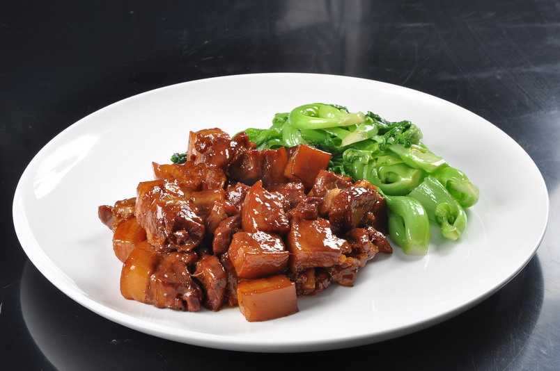 主料:硬五花肉,辅料:大料、白糖、葱、姜等,特点:色红亮,整齐而酥烂,肥而不腻